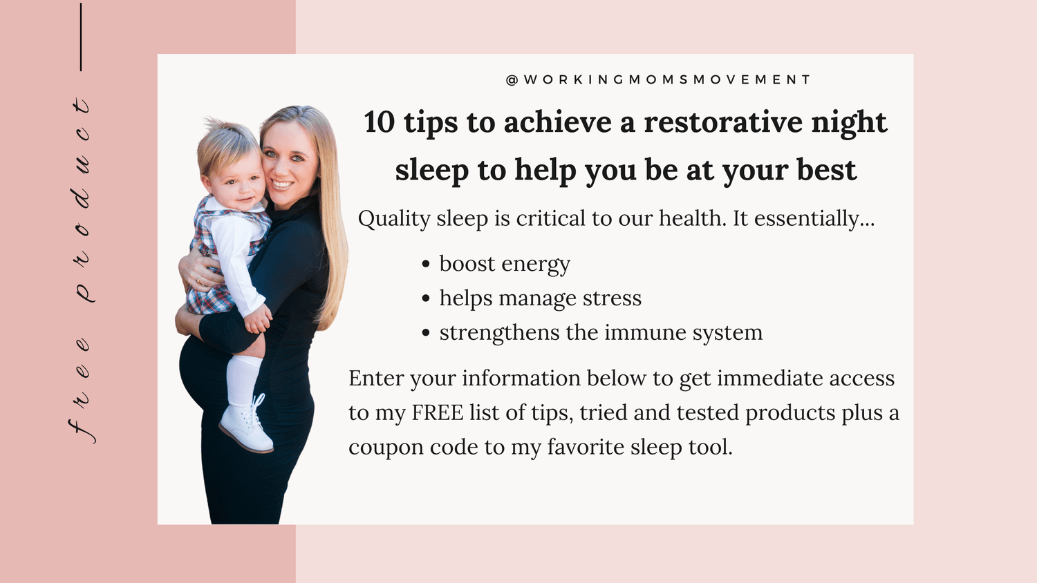 FREE list of tips, tried and tested products plus a coupon code to my favorite sleep tool.